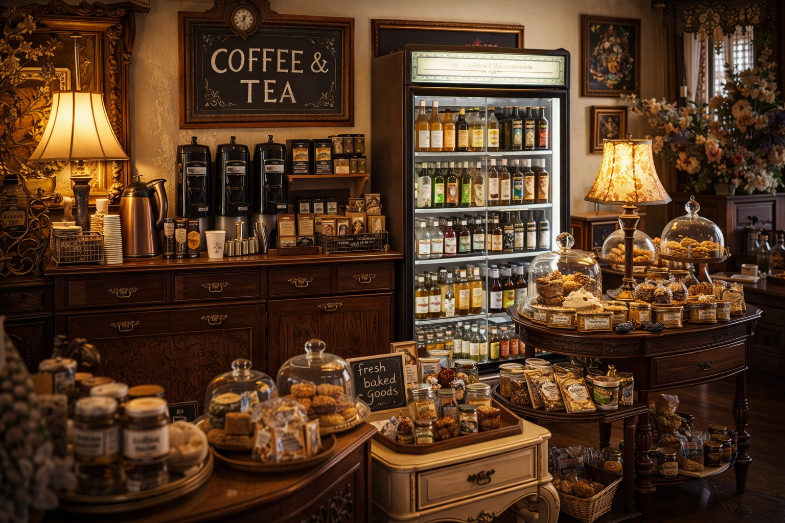 We offer a selection of premium & traditional refridgerated beverages, self-serve coffee & tea, and a rotating selection of food products made by local cottage bakers and cooks.